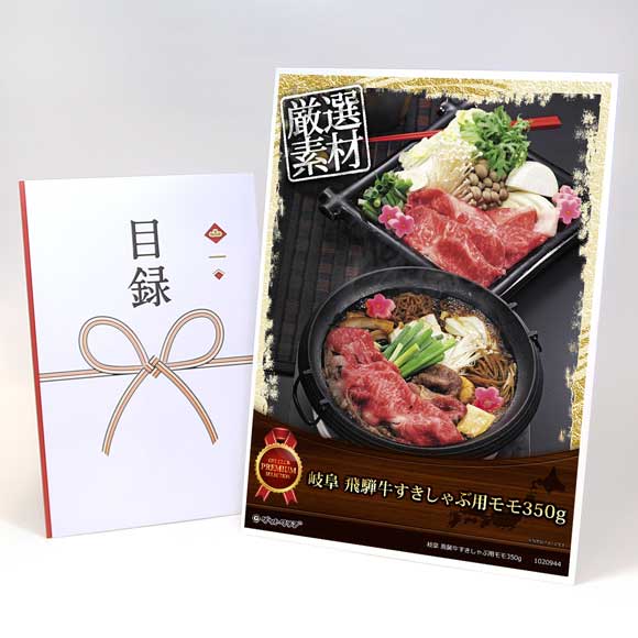 | 2 | 岐阜 飛騨牛すきしゃぶ用モモ350g【目録引換券・A3パネル付き】 | 8600円 | 1個 | 8600円 |