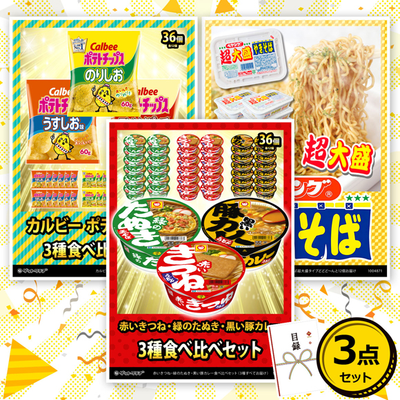 ホーム > イベント景品 >  【景品セット】ビンゴゲームやイベント・宴会・二次会に便利!  >  大盛りジャンクフード目録景品3点セット A3パネル付き[うどん・ポテチ・焼きそば]B028