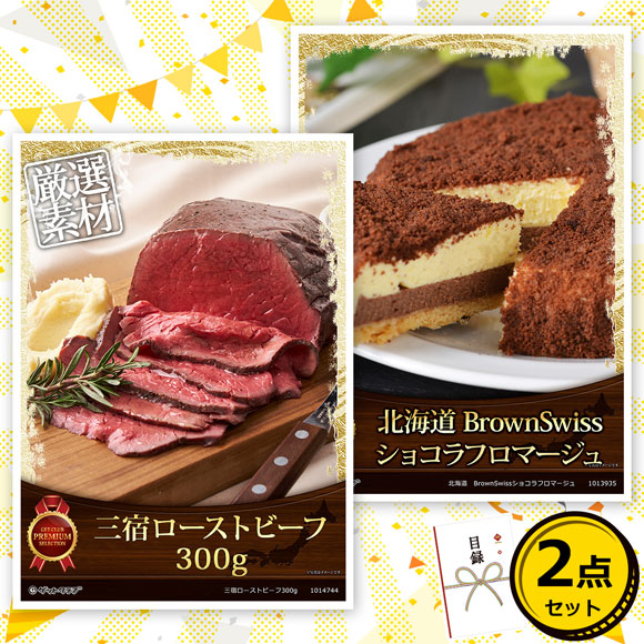 豪華グルメ目録景品2点セット A3パネル付き[ローストビーフ・ショコラフロマージュ]A044