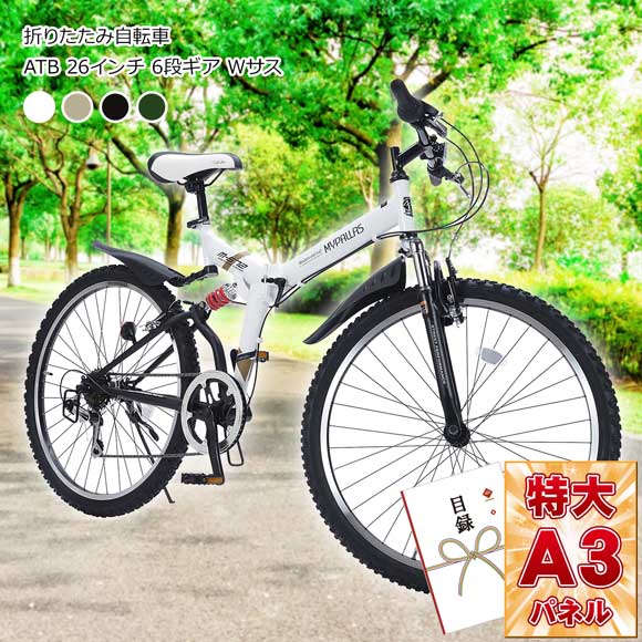 2 | 4色から選べる 折りたたみ自転車ATB 26インチ 6段ギア Wサス【目録引換券・A3パネル付き】 | 36000円 | 1個 | 36000円 |