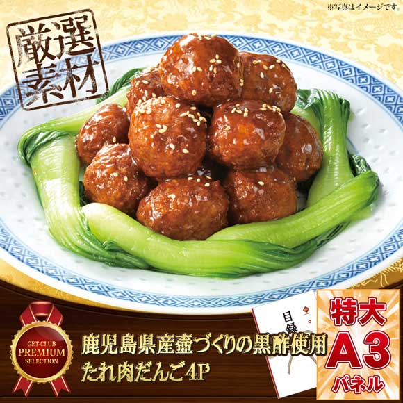 9. 鹿児島県産壺づくりの黒酢使用 たれ肉だんご4P【目録引換券・A3パネル付き】