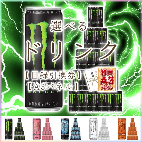 15. 選べるモンスターエナジー(エナジー・パンチ・ゼロ・ウルトラ・カオス)【目録引換券・A3パネル付き】