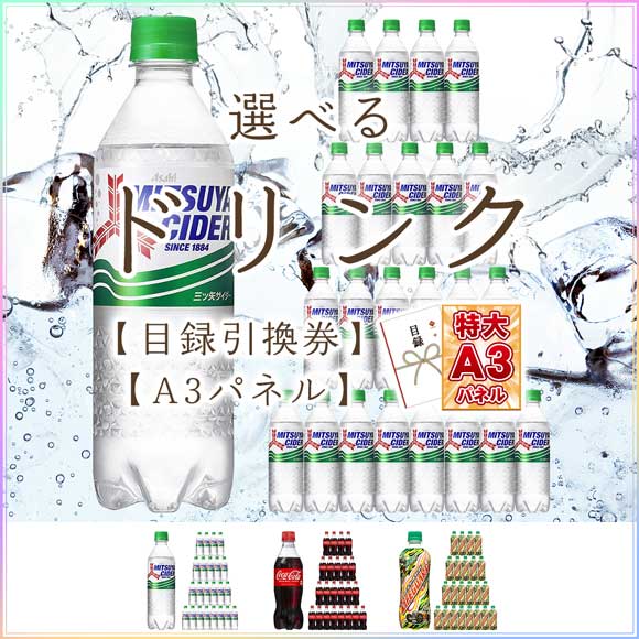 16. 選べる人気の炭酸飲料(コーラ・ライフガード・三矢サイダー)【目録引換券・A3パネル付き】