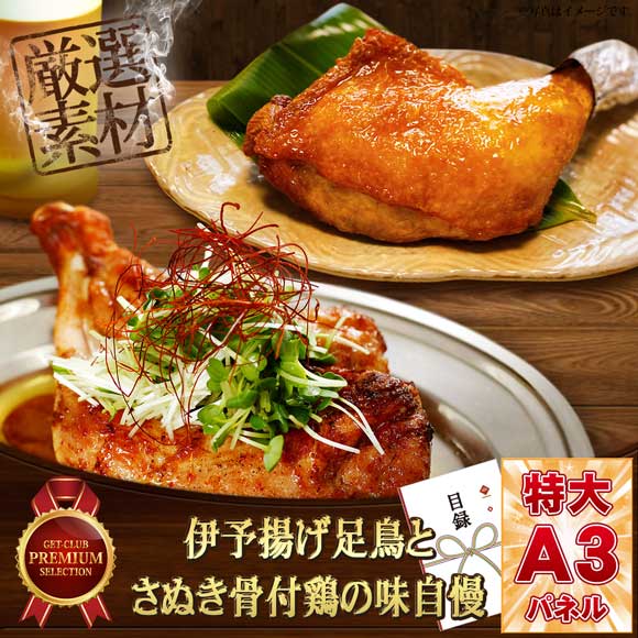 7. 伊予揚げ足鳥とさぬき骨付鶏の味自慢【目録引換券・A3パネル付き】