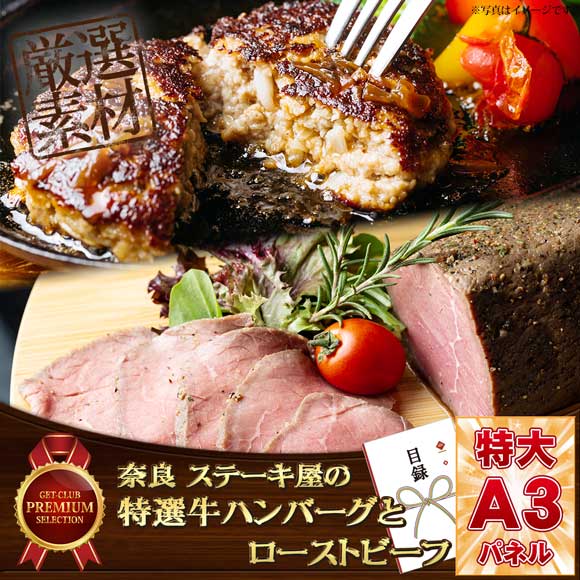5 | 奈良 ステーキ屋の特選牛ハンバーグとローストビーフ【目録引換券・A3パネル付き】 | 7700円 | 1個 | 7700円 |
