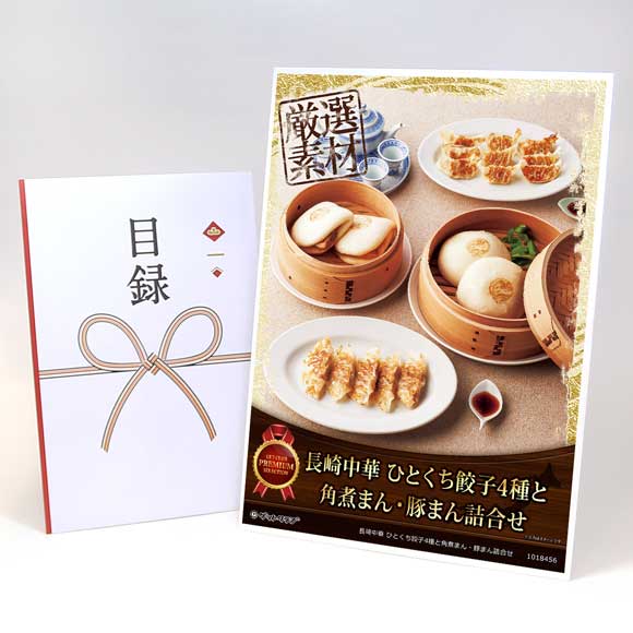 | 27 | 長崎中華 ひとくち餃子4種と角煮まん・豚まん詰合せ【目録引換券・A3パネル付き】 | 5700円 | 1個 | 5700円 |