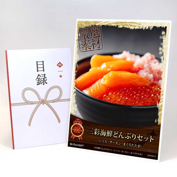 | 32 | 三彩海鮮どんぶりセット(いくら・サーモン・まぐろたたき)【目録引換券・A3パネル付き】 | 5250円 | 1個 | 5250円 |