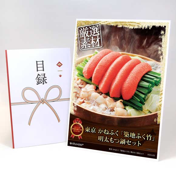 16. 東京 かねふく「築地ふく竹」明太もつ鍋セット【目録引換券・A3パネル付き】