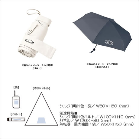 他の傘に比べて幅広のベルトデザインのため、ベルト部分にも名入れが可能で