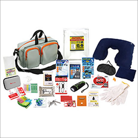 収納ショルダーバッグ・防災の心得・IDホイッスル&カラビナリング・カイロ・レインコート・携帯用トイレ1P・抗菌消臭簡易トイレ1P・トイレポンチョ・ダイナモ多機能ライト・軍手・アルミブランケット・マスク・ウェットティッシュ・洗濯ロープ&ピンチ・ネックピロー・アイマスク・耳栓・8徳ナイフ・ソーイングセット・水に流せるペーパー・救急6点セット・45Lゴミ袋3P