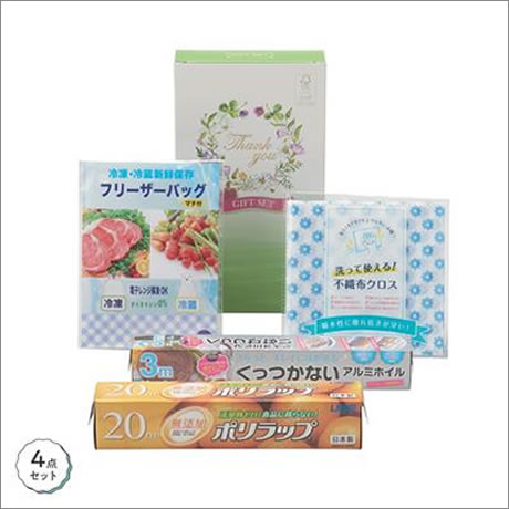 セット内容/くっつかないアルミホイル25cm×3m・ポリラップ22㎝×20m・フリーザーバッグ2枚・洗って使える!不織布クロス1枚