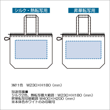 昇華転写印刷範囲 W400×H200(mm)  ※本体色ホワイトのみ印刷可