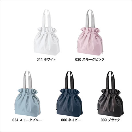 口元のフリルデザインがポイントの巾着タイプのポリエステルトートバッグです。