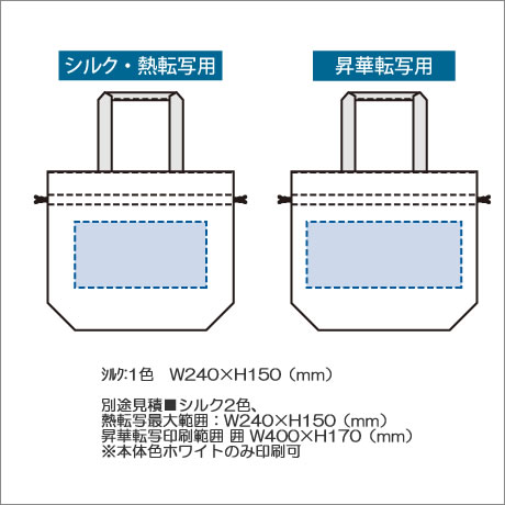 昇華転写印刷範囲 囲 W400×H170(mm) ※本体色ホワイトのみ印刷可