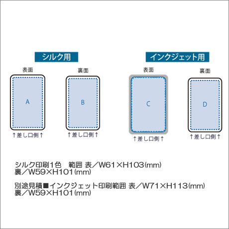 別途見積■インクジェット印刷範囲 表/W71×H113(mm) 裏/W59×H101(mm) |