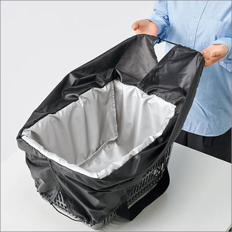 大きめのレジカゴにもぴったりはまるサイズ感で、スーパーなどで便利にお使いいただけます。