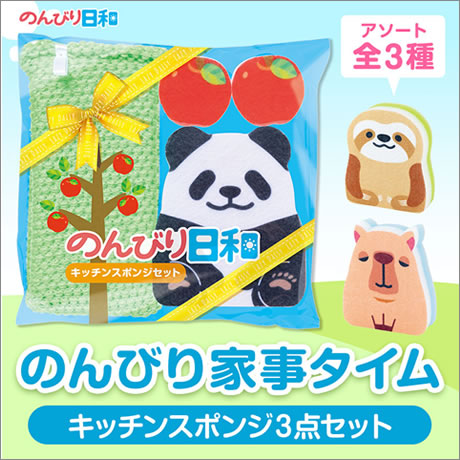 忙しい毎日に癒しを届ける「のんびり日和」シリーズのキッチンスポンジセットです。