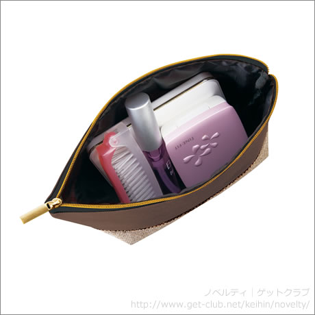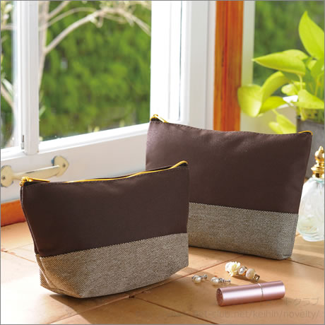 たっぷりマチの定番舟形でメイク道具もたくさん入ります。 暖かみのあるツイード生地が季節感を演出します。