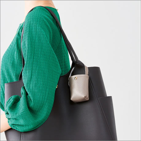 畳んでポーチに収納、バッグに付けて持ち運び、