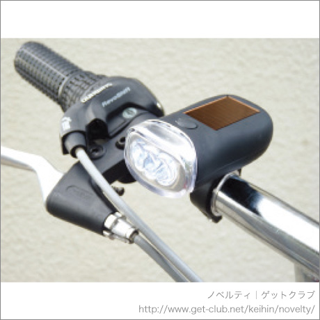 手回し充電とソーラー充電の2ウェイで使えます。自転車に取り付けられるホルダー付。