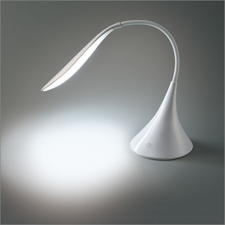 しなやかな白鳥の首のようにライトの角度調整が自在。ライトもセンサータッチボタンでお好みの明るさに。