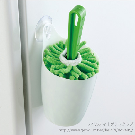 コンパクトなマイクロファイバーモップに専用の収納カップがついています。使用後はカップにポンといれ、取りやすい位置に吸盤でつけておけます。もちろん水洗いOK!