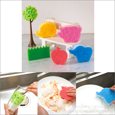 素材:スポンジ/PU・ポリエステル 不織布たわし/ポリエステル コップ洗い/PU・PP 色:ぞう・はりねずみ・ぶた均等取混ぜ |