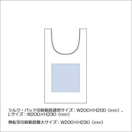 備考 シルク・パッド印刷範囲 通常サイズ:W200×H200(mm)、Lサイズ:W200×H230(mm)