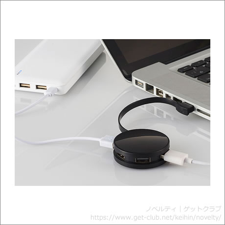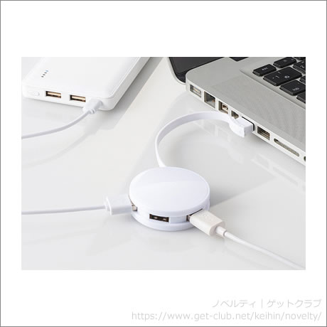 デジタル機器を接続するときに便利なUSBハブ。コンパクトサイズながら4つのポート付きです。オフィスでも出張でも活躍します。