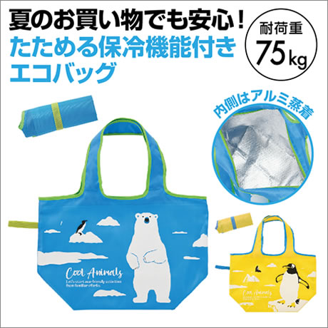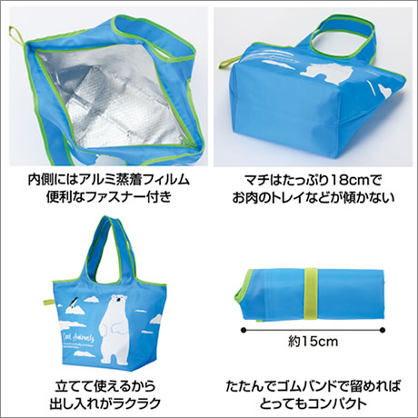 内側がアルミ蒸着仕様の、保冷機能付きエコバッグです。