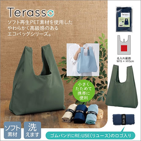 ソフト再生PET素材を使用したやわらかく高級感のあるエコバッグシリーズ。