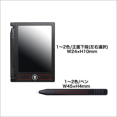※下記内容を希望の場合は、印刷代が変わります。御見積ご依頼ください。 2色/ペン:W45×H4mm(パッド印刷) 1~2色/正面下段(左右選択):W24×H10mm(パッド印刷) |