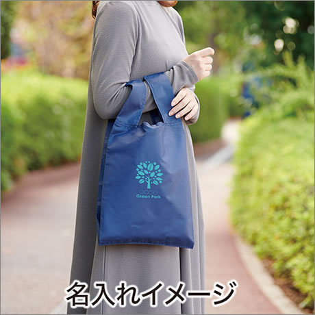 100%再生PET生地でつくったエコバッグです。パッケージも紙巻使用で、脱プラ・サステナブルを訴えられるアイテムです。