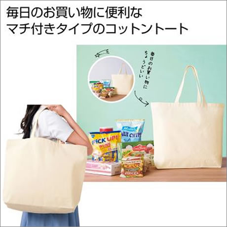 底マチがついていて肩掛けもOK。毎日のお買い物に大活躍します。