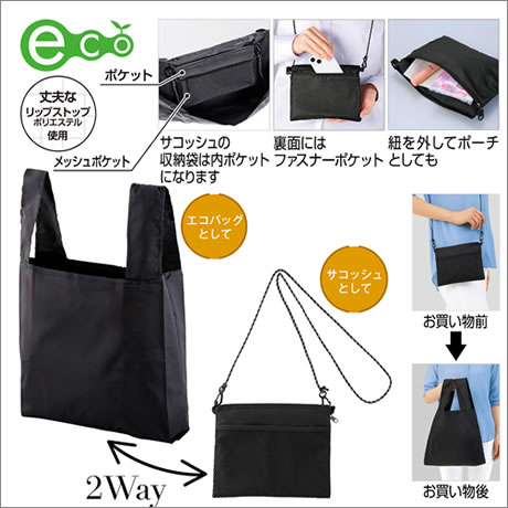 - 2WAYサコッシュ&エコバッグ(メッシュポケット付き)