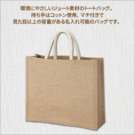 環境にやさしいジュート素材で持ち手はコットン使用のトートバッグ。