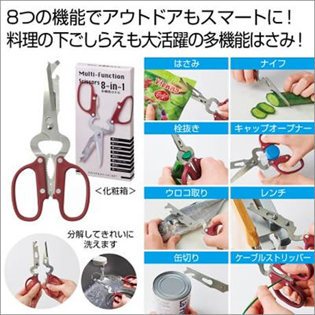 アウトドアもスマートに!ナイフや缶切りなど、8つの機能で調理の下ごしらえにも大活躍!
