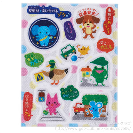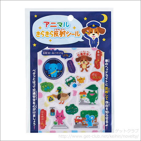 車のヘッドライトに反射して、存在を知らせる反射シール。かわいいイラストが配りやすい啓発グッズとして人気です!