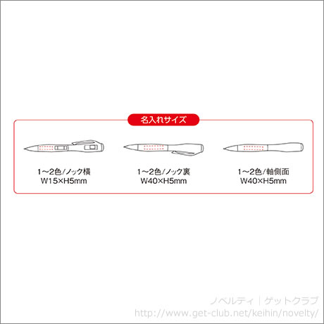 名入れサイズ:ノック横:W15×H5mm、ノック裏:W40×H5mm、軸側面:W40×H5mm