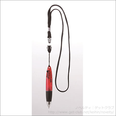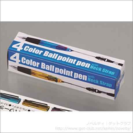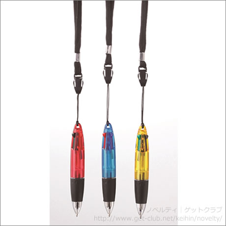 ミニ4色ボールペンに、ネックストラップが付きました。
