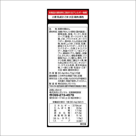 <セット内容> 80.4g(めん70g)×5袋