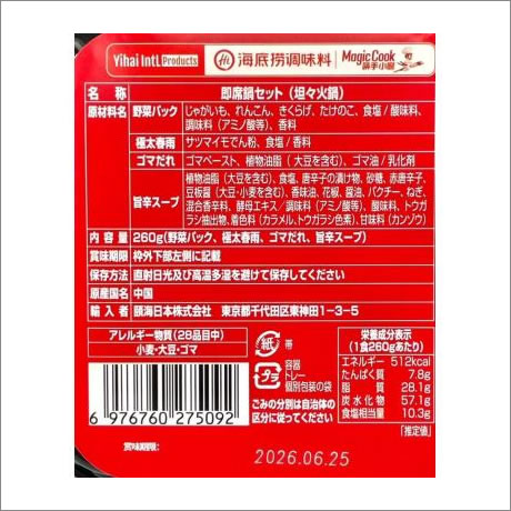 世界No.1火鍋ブランド「海底撈)」の火鍋を、電気・火を使わず水を注ぐだけで楽しめます。
