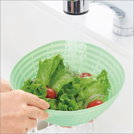 絞って簡単に水切りができる、多用途のシリコンざる。