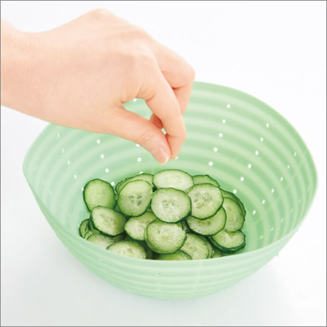 野菜の水切り、煮汁きり、塩もみのほか、蓋開けやレンジカバーにも使用可能です。