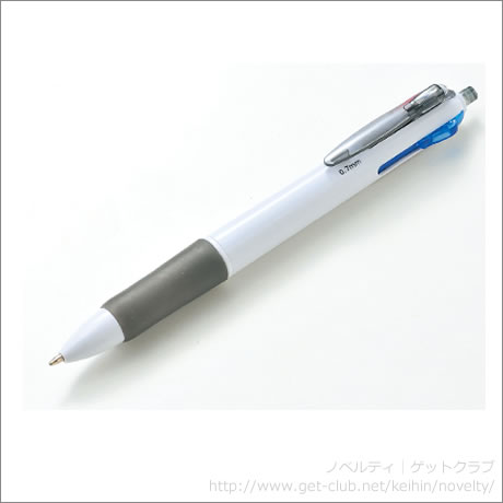 黒色はペン先0.7mmと1.0mm、赤色と青色は0.7mm。4つの機能を一体化した使い勝手の良いボールペンです。