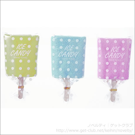 冷たい?!アイスキャンディ型のユニークパッケージ入りハンドタオルです。