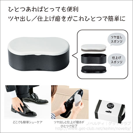 ひとつでツヤ出しと、仕上げのスポンジができる靴磨き。