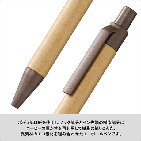 "紙とコーヒー樹脂を使用したエコ素材のボールペンです。