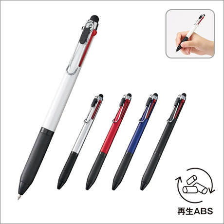 再生ABSを使用したタッチペン付き3色ボールペンです。