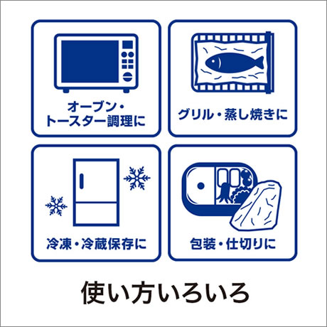 おにぎりの包装や、オーブントースターやグリルの受け皿等、幅広いシーンでご活用いただけます。